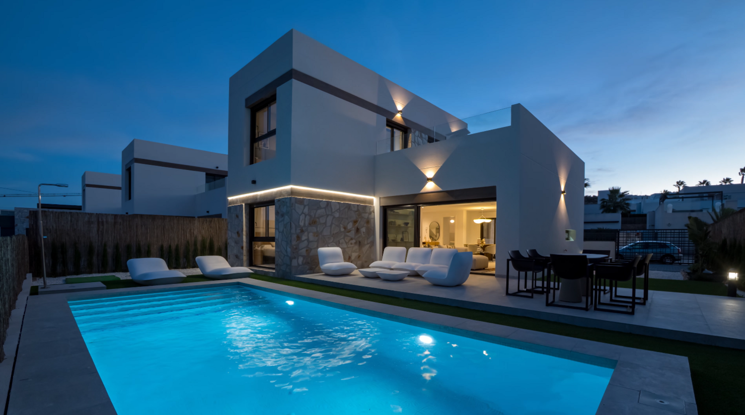 Key Ready – direct genieten ! Deze elegante villa’s, verrijkt met prachtige natuursteenaccenten, strekken zich uit over twee woonlagen bieden een lichte woonkamer met open keuken en een riante tuin rondom. De privé-oprit en het verfrissende zwembad maken het buitenleven hier compleet. Gelegen op het geliefde La Finca Golf Resort, bevinden zowel de heuvelachtige golfbaan als het hoger gelegen clubhuis zich op slechts ca. 600 meter afstand.